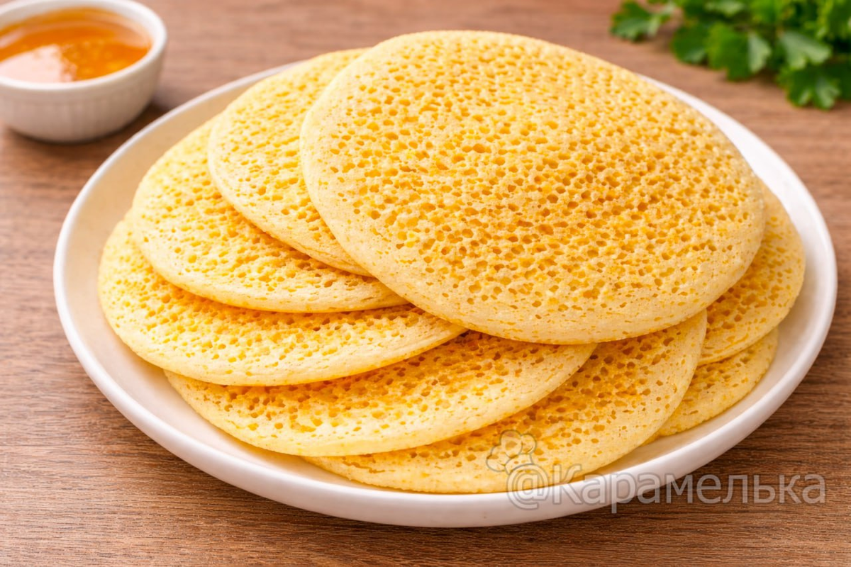 Здравствуйте, мои хорошие! Иногда утро начинается не с будильника, а с запаха чего-то тёплого и домашнего. С тихого шуршания на кухне, с кружки чая в руках и мягкого света из окна. И вот в такие дни особенно хочется приготовить что-то необычное, но не сложное. Что-то, что удивит даже вас самих. Именно такими для меня стали марокканские блины с сотами. Первый раз, когда я их готовила, честно признаюсь, стояла у плиты и просто смотрела на сковороду. Это почти магия. Вы наливаете жидкое тесто, и вдруг на поверхности начинают появляться десятки крошечных пузырьков. Они раскрываются, превращаясь в аккуратные дырочки, словно пчелиные соты. И в этот момент очень хочется позвать всех на кухню: «Смотрите, смотрите, как красиво!» Эти блины отличаются от привычных нам. Они жарятся только с одной стороны, получаются нежными, пористыми, словно губка, и идеально впитывают мёд, масло или сироп. Завтрак с ними превращается в маленький праздник, даже если за окном самый обычный будний день. Ингредиенты