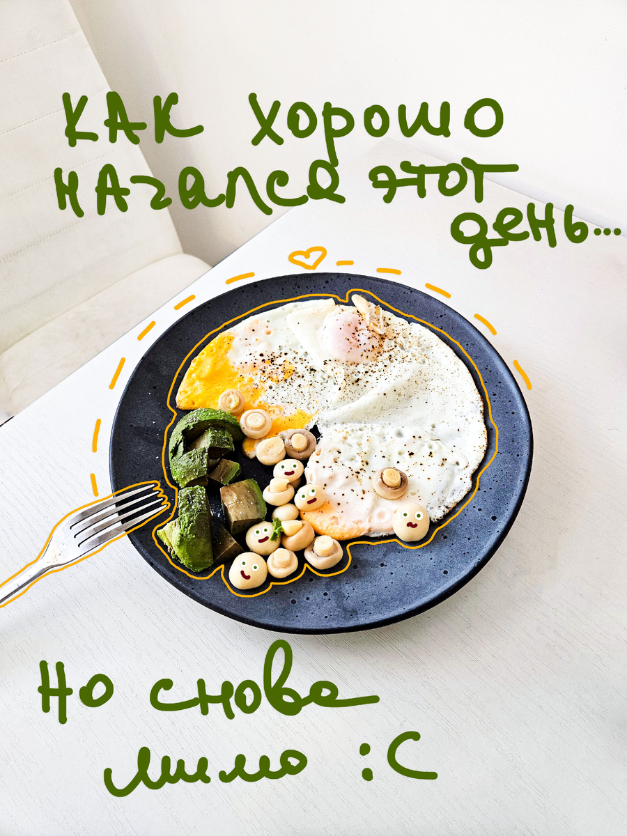 Маленький шаг завтра — начать с интервального завтрака Сегодня день был странный. Настроилась на интервальное питание, а на деле еда устроила свой собственный марафон. Завтрак в 11 — яичница с авокадо. Всё вроде по плану, но через пару минут внезапная паника: доела больше, чем рассчитывала. На глаз получилось около 1800 ккал. У меня это выглядит вот так: вроде контролируешь, а потом внезапно “опа, уже всё съела”. В 15 часов между приемами появился пирожок. Не планировала, но он просто оказался рядом. Съела. Даже не знаю, сколько это добавило к калориям. Прям пример того, как момент выбора можно потерять за пару секунд. А вечер… вечер — это был праздник панической еды. Планировался легкий творожок, если совсем невтерпеж, а на деле я просто ела всё подряд и много. Лепешки, печенье, остатки чего-то из холоди