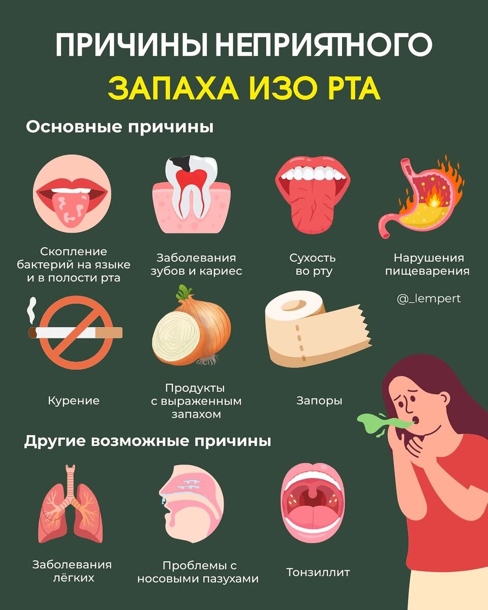 ❗️В 80–90% случаев причина запаха находится в полости рта.