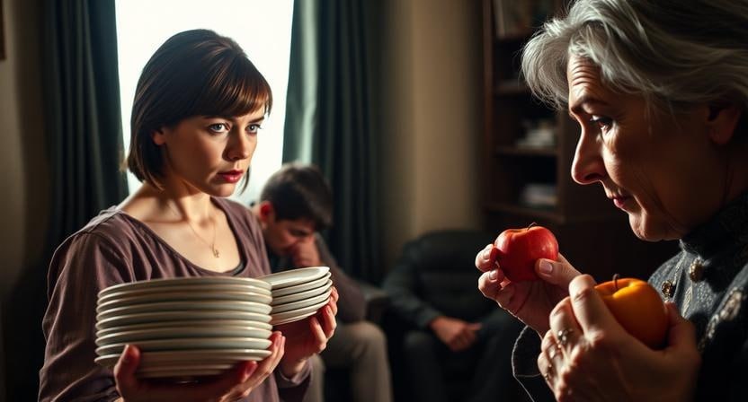 Валентина Петровна, женщина с лицом, похожим на застывшую гипсовую маску благопристойности, медленно подошла к столу и взяла яблоко. Она откусила его с громким, сочным хрустом, глядя на невестку с выражением скучающего превосходства. В этом взгляде не было злости. Было что-то хуже — полное, абсолютное равнодушие к чужой боли. Так смотрят на насекомое, которое случайно заползло на чистую скатерть.