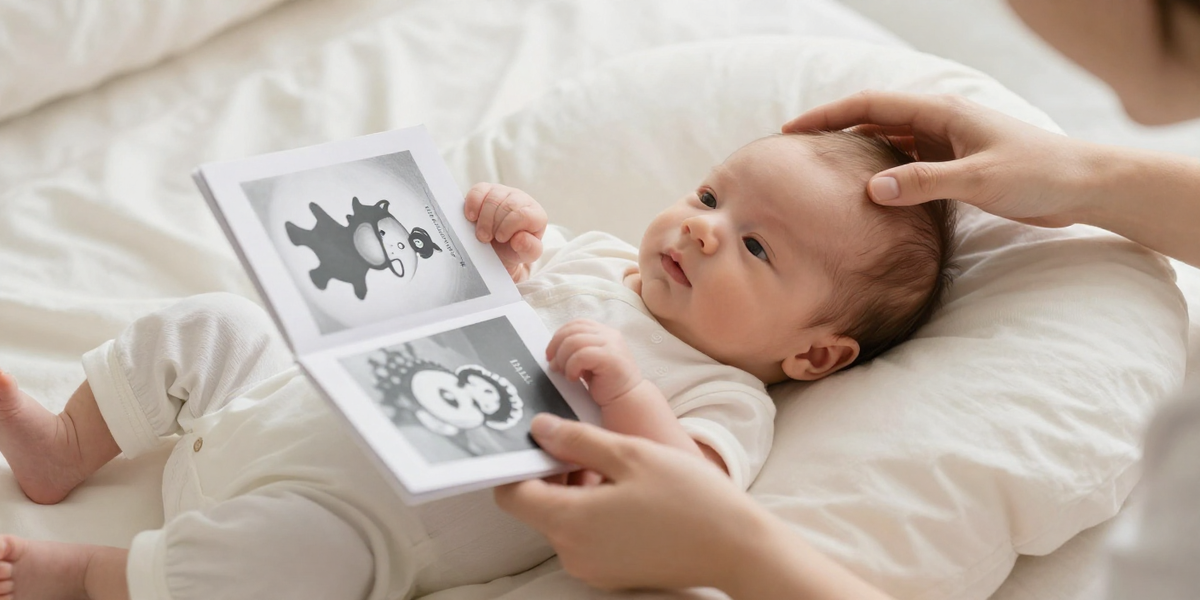- Лица и глаза — с рождения. Малыши особенно тянутся к человеческим лицам и взгляду: это главный стимул для общения и привязанности.