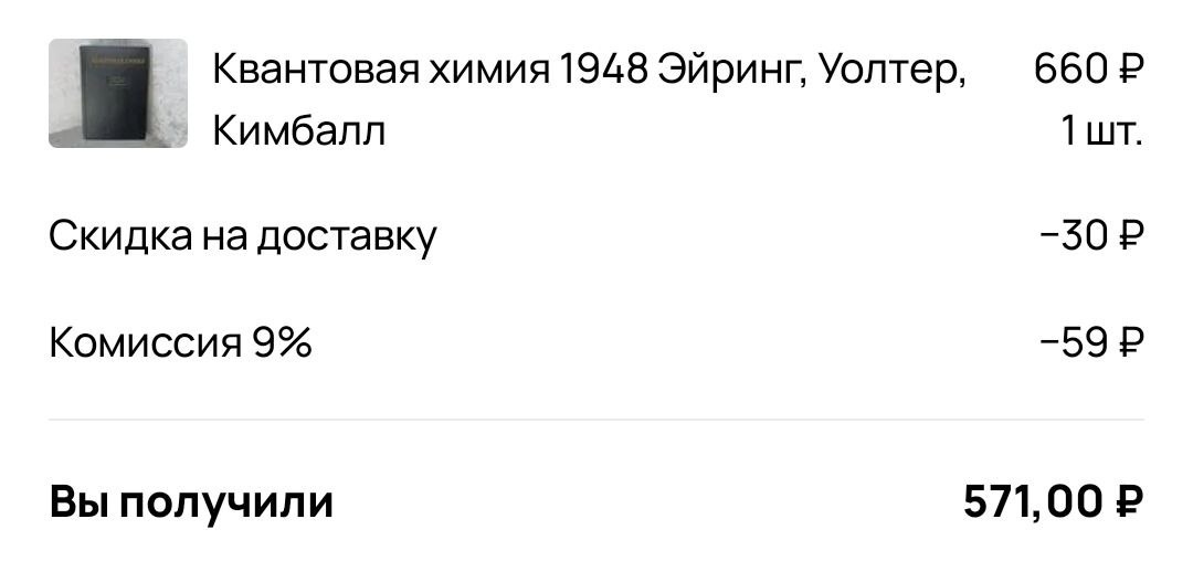 Не знаю почему, но на Озоне к подобным раритетам как-то остаются равнодушными. Но Авито подобные книги любит. Квантовая химия 1948 года 🤌 Я пока фотографировала, листала, то ужасалась длинной формул 🙈 И заботливо поставила на полку, зная, что химию довольно бодро покупают. Так и случилось 👌