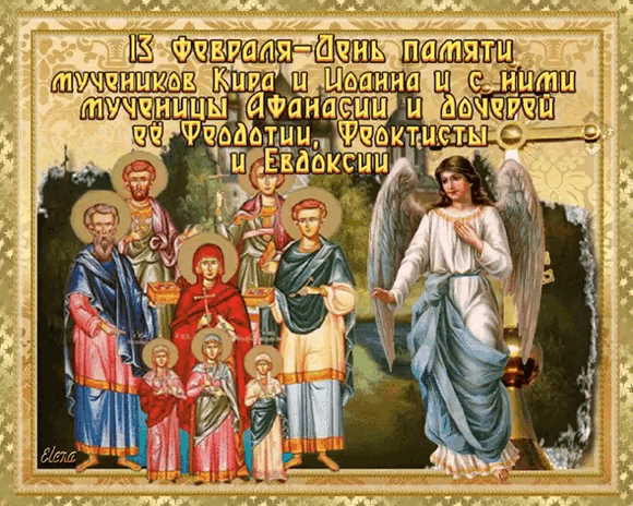 — Бессребреников мучеников Кира и Иоанна и с ними мучениц Афанасии и дочерей ее Феодотии, Феоктисты и Евдоксии (311)