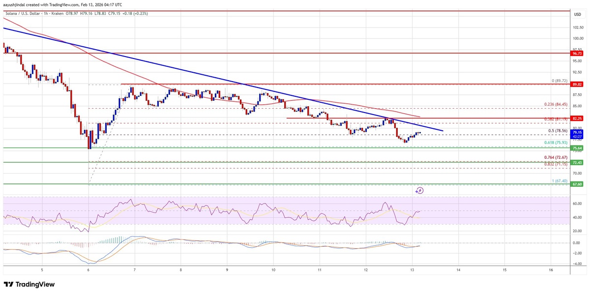 Цена SOL 📉 скорректировалась ниже $85 и торгуется у отметки $82, игнорируя попытки роста выше $90. Актив продолжает снижаться, что указывает на усиление "медвежьих" настроений на рынке. 📊 Ключевые моменты: - SOL торгуется ниже $82 и 100-часовой простой скользящей средней. - На часовом графике SOL/USD формируется медвежья линия 📉 сопротивления на уровне $81. - Цена может упасть до $76, если текущая тенденция сохранится. - Ключевые уровни сопротивления: $81, $82.20, $85 и $90. - Ключевые уровни поддержки: $76, $72.50, $68 и $60. ⚠️ Риски: Возможно дальнейшее снижение, если SOL не сможет удержаться выше уровня $76. Горизонт: краткосрочно