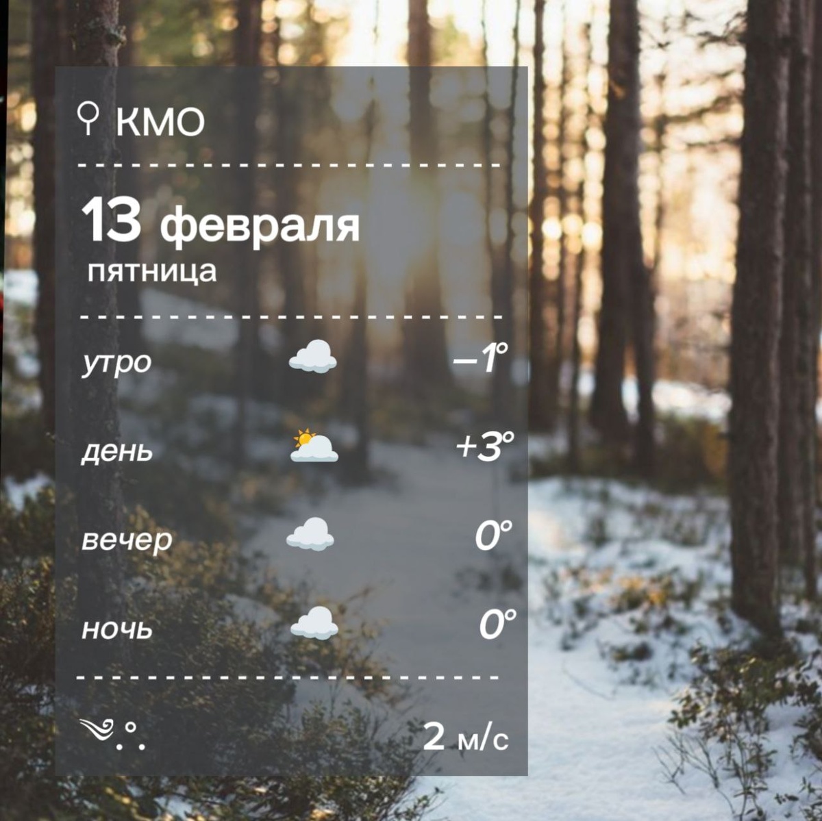 Погода в Кировском округе 13 февраля