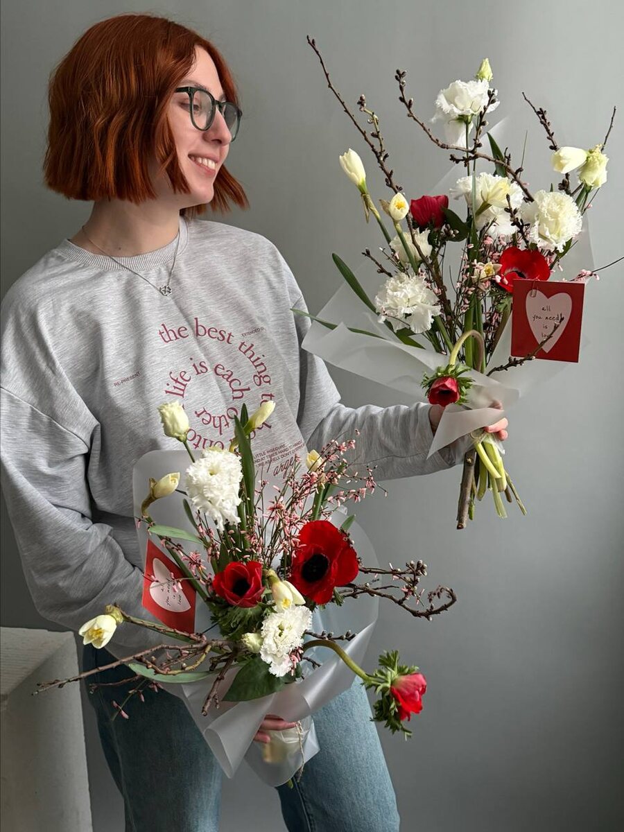 ! ❤️❤️❤️ Подготовили самую романтичную подборку букетиков к самому романтичному празднику: 🍓 с бантиком 4200.- вместо 4750.- Роза Дима Бомбастик/гениста 🦪 в прозрачном 4500.- вместо 5100.- Анемон/нарцисс/гениста/эустома/веточки цветущие 🌿 в розовом 4900.- вместо 5400.- Роза Бомбастик/диантус/веточки березы Для заказа: @mateflowers_bot
