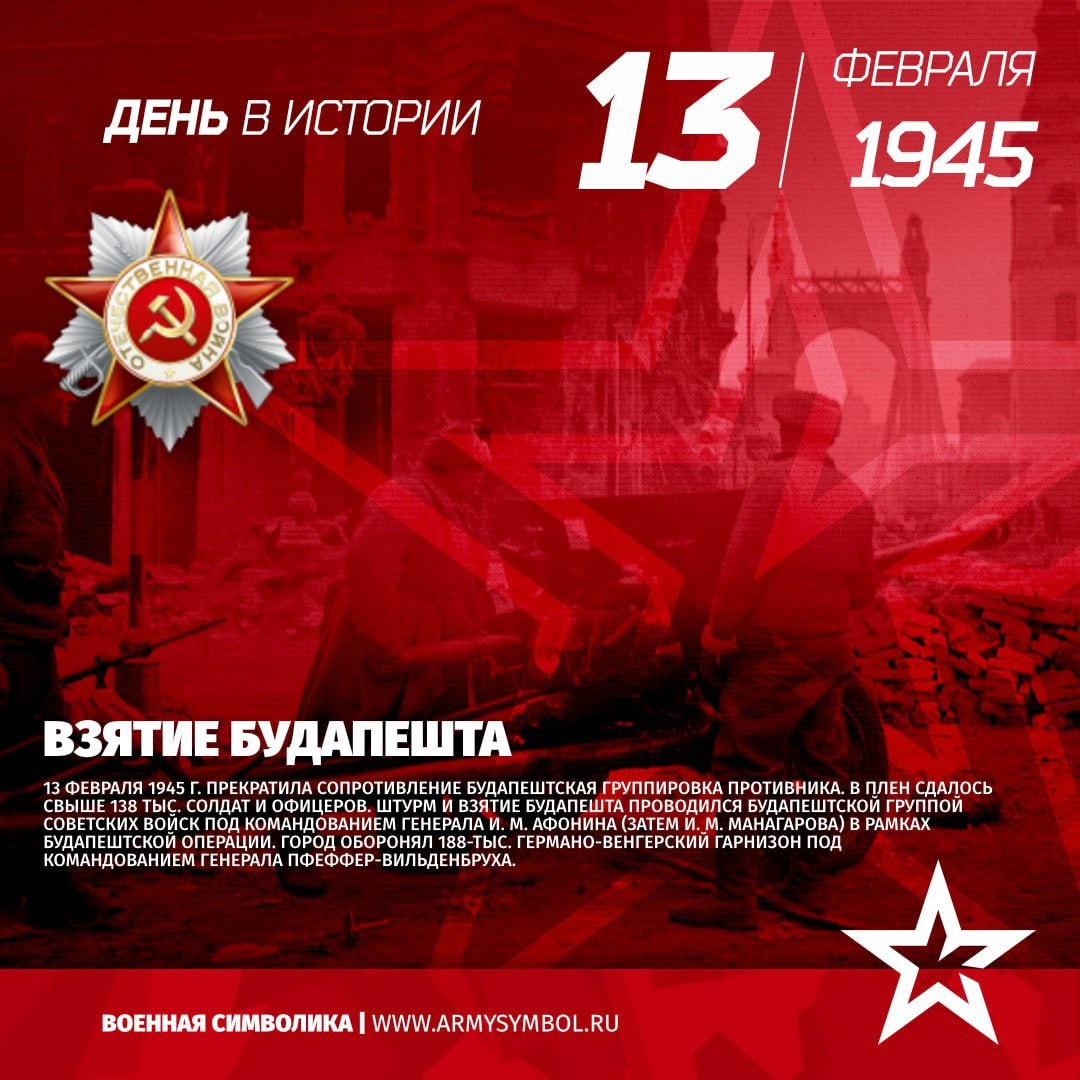 8 января 1945 года советские войска заняли левобережную часть Будапешта — Пешт. Штурм города осуществлялся Будапештской группой войск под руководством генерала И. М. Афонина (позже его сменил И. М. Манагаров) в рамках Будапештской операции. Основная нагрузка в уличных боях легла на штурмовые группы и саперов. После неудачной третьей попытки прорыва окруженной группировки (с 18 января по 7 февраля), 13 февраля сопротивление противника в Буде было окончательно сломлено. Более 138 тысяч солдат и офицеров сдались в плен, включая командующего гарнизоном генерала Карла Пфеффер-Вильденбруха. Потери советских войск, включая 2-й и 3-й Украинские фронты и Дунайскую военную флотилию, составили свыше 80 тысяч человек убитыми и более 240 тысяч ранеными. #ДОСААФ #ДОСААФРоссии #ДеньВИстории