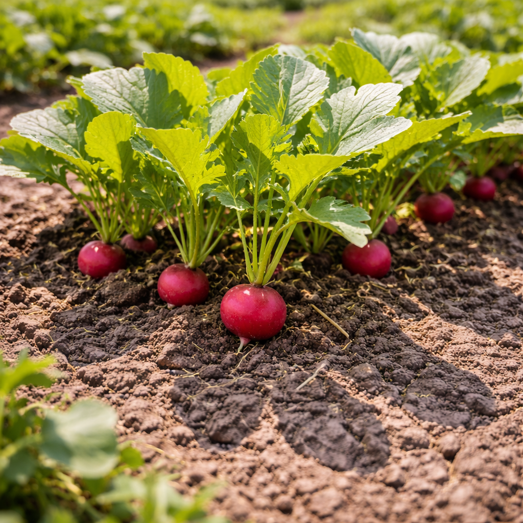 И уже через несколько дней вкус и структура корнеплода становятся другими. Почему так происходит? Редис — культура короткого дня. Когда температура резко повышается, растение получает сигнал: условия меняются, нужно быстрее завершить цикл. Это означает одно — ускорение роста. Сначала кажется, что это плюс. Корнеплод быстрее наливается, ботва активно развивается. Но внутри уже запускаются другие процессы. При резком потеплении усиливается испарение влаги. Чтобы сохранить воду, растение делает ткани более плотными. Корнеплод может: Если при этом почва пересыхает, эффект усиливается. Высокая температура — стресс для редиса. В ответ он начинает вырабатывать больше защитных веществ, которые и дают характерную остроту. Иногда редис выглядит идеал
