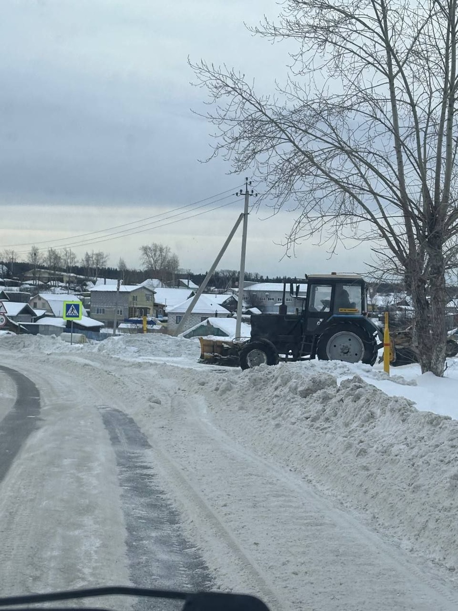 Ул. Зеленая, поворот на ул. Щербакова, спихивает снег и не более. Теперь смотрим как работает техника на плотине.