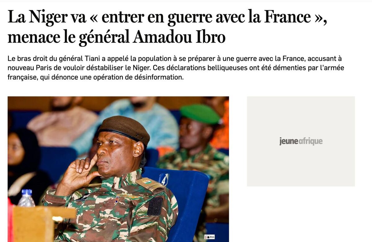 «Мы не были в состоянии войны, но сейчас мы вступаем в войну с Францией», — начальник военного штаба Нигера #сми 📱ПоДПиСаТьСя На КаНаЛ3 📱ДоСТуП К ЭКСКЛюЗиВу