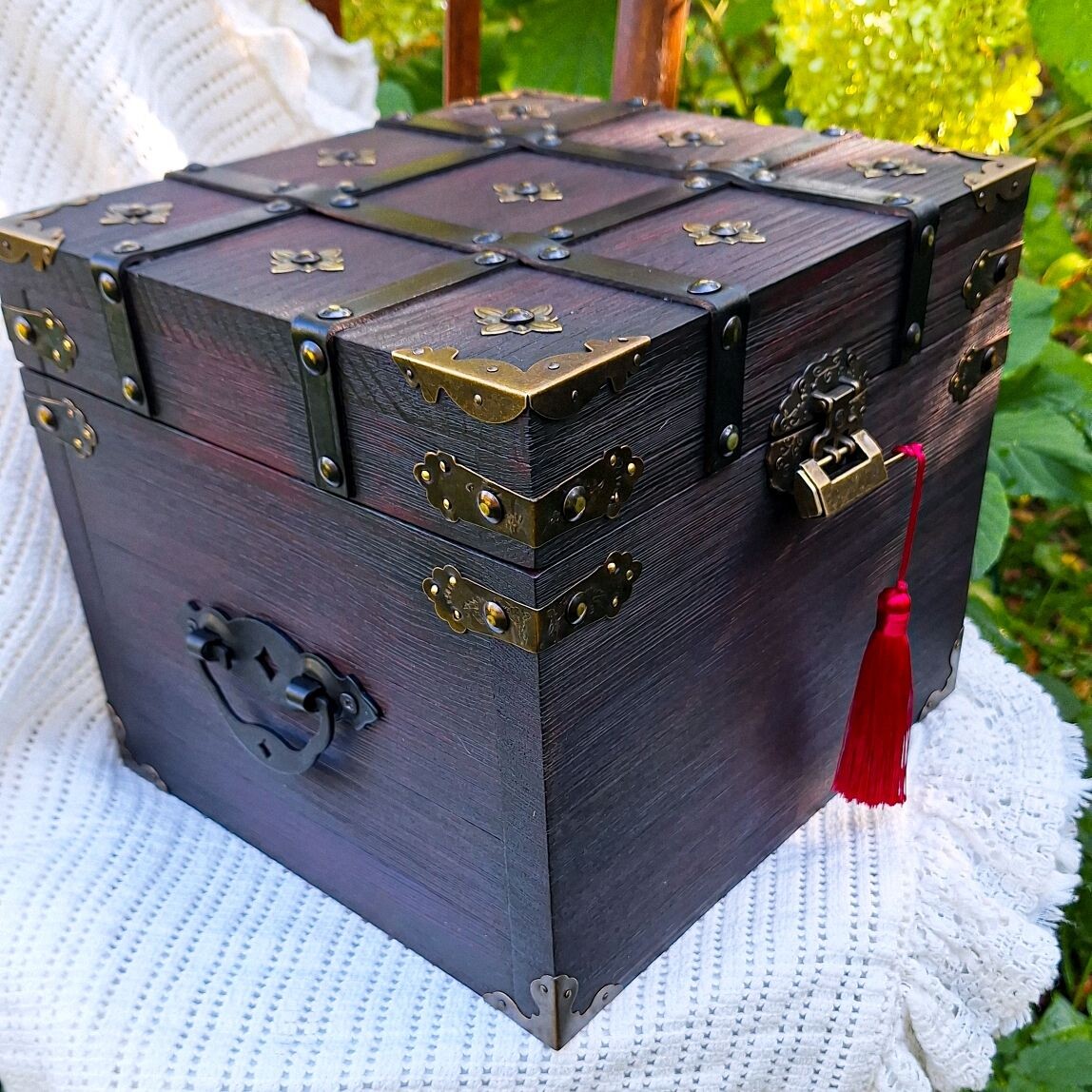 ». 👐💜🎁 Сундук Русская Красавица фиолетовый- замок с ключом в подарок девушке 💜🗝 Этот элегантный дамский #сундучок #ручнаяработа цвета спелой вишни создан для хранения ваших самых драгоценных сокровищ. Он не только станет стильным дополнением вашего #интерьер, но и будет хранить в себе воспоминания о самых ярких моментах вашей жизни. 🏛💖 Почему он станет вашим любимым: ✅ Идеальный формат: Компактные размеры (24х26х18 см) позволяют легко вписать его в любое пространство. Он не выглядит массивным, но при этом достаточно ёмкий для украшений и важных мелочей. #уют и утонченность! ✅ Секретность: Оснащен стильным накладным замком и необычным навесным замочком с ключом (входит в комплект!). Ваши ценности под надежной защитой. 🔐 ✅ Мастерство исполнения: Тщательно подобранная металлическая фурнитура и стильная #кожаная оплетка подчеркивают благородный #русскийстиль. 🎨 Вариант в красном цвете доступен #на_заказ. 💰 Цена: 16 000р. --- 🏡 Мастерская Nadin Sunduk — Оригинальные авторск