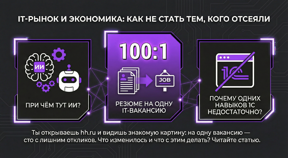 Ты открываешь hh.ru и видишь знакомую картину: на одну вакансию "специалист 1С" - двадцать с лишним откликов. Ещё год назад было десять. А два года назад тебе писали рекрутеры сами, даже если ты не обновлял резюме. Что изменилось? И главное - что с этим делать?