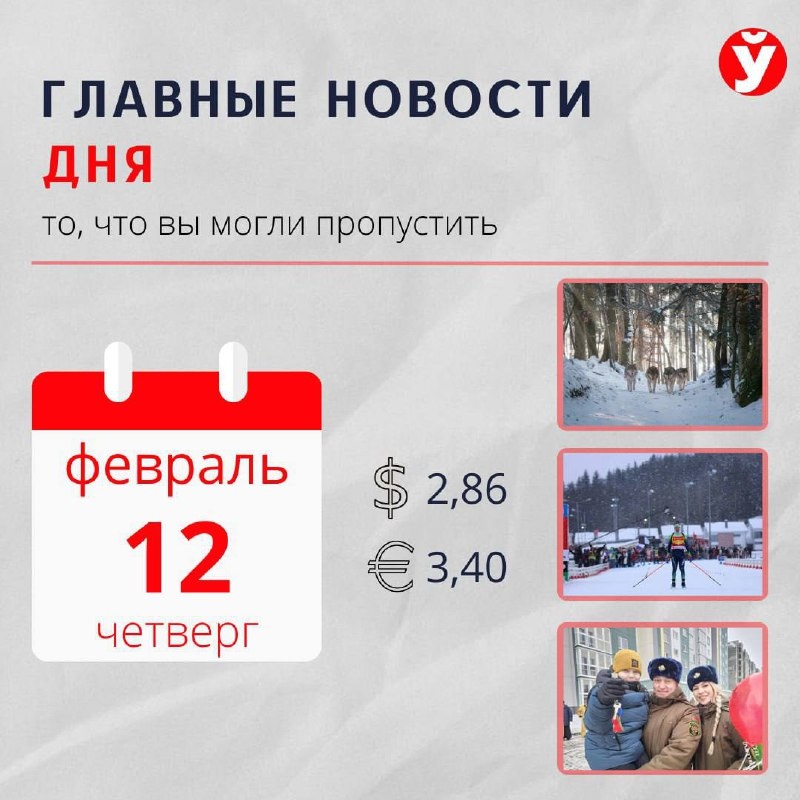 ‼️Белорусских туристов эвакуируют с Кубы вместе с российскими туристами, также приостановлены рейсы на Кубу. 🇧🇾🇫🇷МИД подтвердил визит французского дипломата в Беларусь. 🔥Гость нового выпуска программы "Марков. Ничего личного" — заместитель председателя Постоянной комиссии Совета Республики Национального собрания, главный редактор издательского дома "Беларусь сегодня" ДМИТРИЙ ЖУК — о том, почему мир в нашей стране — результат огромного труда Президента, и возможен ли спорт без политики? ❗️Продолжается активная фаза нового этапа проверки боеготовности армии. 📌В Совете Республики прошло заседание Молодежного совета. ❓Кто ответит за бесконтрольный выпас коров под Молодечно — в новом выпуске проекта "Тик-Толк". 🎬В Минске состоялась премьера фильма "Душа защитника". 📺Новый телеканал запустят 23 февраля в Беларуси. ❄️Оттепель сменится морозами. Погода на 13-15 февраля. #главноеМЫ🇧🇾