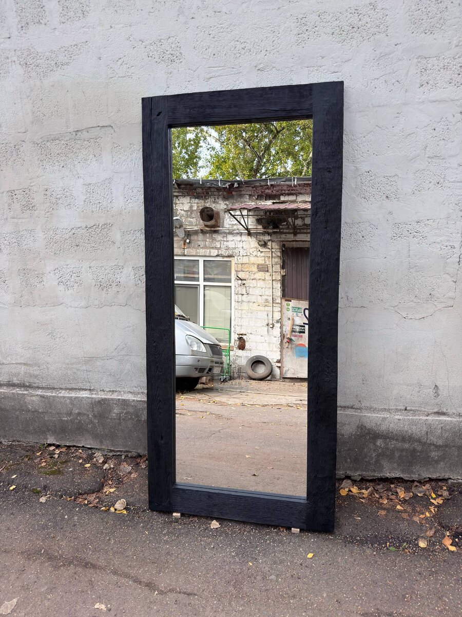 Это настроение пространства. Мы создаём зеркала в старых рамах и в рамах из старого дуба — от небольших акцентных до больших ростовых, которые становятся центром интерьера. Каждая рама — со своей историей. Где-то сохранилась старая резьба, где-то — следы времени, потертости, патина, естественные трещины. А где-то — мощный, фактурный старый дуб с глубоким рельефом и живой текстурой. Мы не маскируем возраст древесины. Мы его подчёркиваем. Старая доска проходит очистку, обработку и сушку, а затем превращается в раму, которая служит десятилетиями. Это не просто декор — это характер. Маленькое зеркало добавит акцент в прихожую или ванную. Ростовое — визуально расширит пространство, добавит света и глубины. В лофте, в современном минимализме, в загородном доме — такие зеркала работают в любом стиле, потому что натуральное дерево всегда уместно. Каждое изделие делаем в нашей мастерской. Под размер, под задачу, под интерьер. Если вы хотите зеркало, которое будет не «как у всех», а с ист
