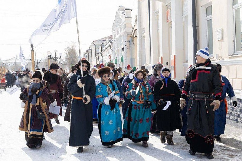 ! Конечная точка «Дэгэлфлэшмоба» поменялась: концерт пройдёт на Арбате, а не на Площади Революции 20 февраля Буряад театр приглашает всех на пятый зимний дэгэлфлешмоб — яркое шествие в национальных костюмах в самом сердце города Маршрут: 13:00 — собираемся на Площади Советов 13:15 — дружной и весёлой колонной выдвигаемся на Арбат. На Арбате вас ждёт концерт и праздничная ярмарка, где можно будет согреться горячими буузами, попробовать плов, а также купить подарки и сувениры к Сагаалгану для родных и близких. В этом году акция Буряад театра приобретает особую ценность: он объявлен Годом единства народов России. Мы приглашаем представителей разных народов в традиционной или стилизованной национальной одежде принять участие в «Дэгэлфлешмобе» и показать, какая многонациональная Республика Бурятия.