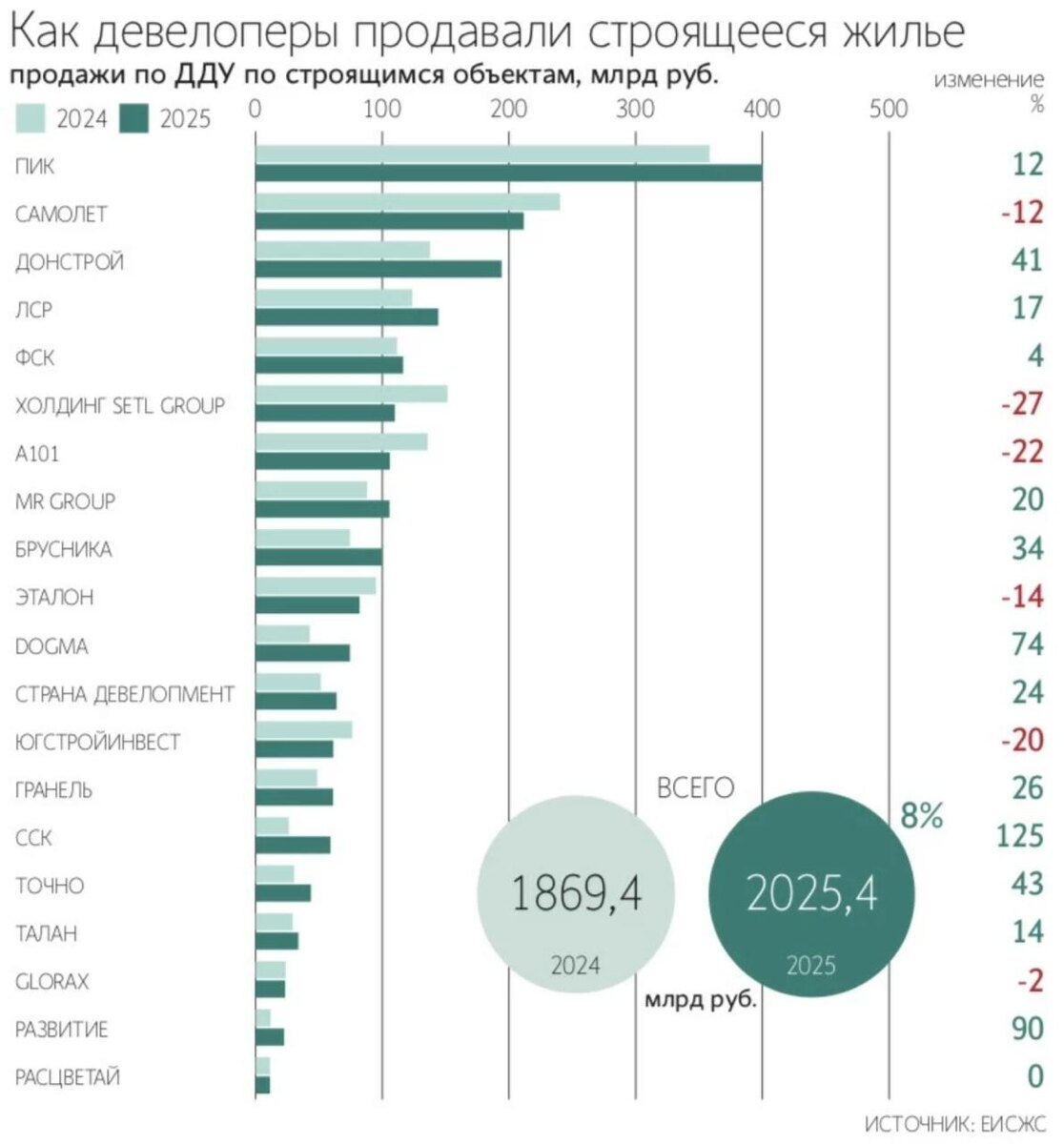 🪖 Выручка топ-20 застройщиков выросла на 8,3% при стагнации продаж — Ведомости