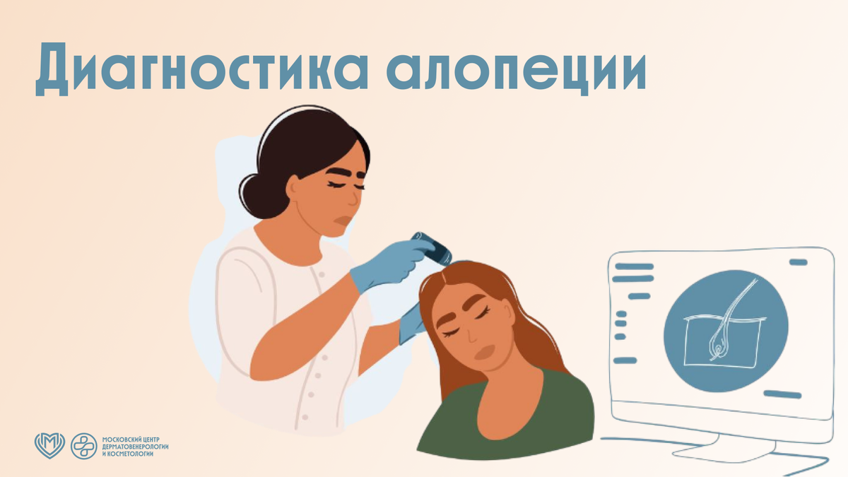 Алопеция – патологическое выпадение волос, приводящее к их поредению или полному исчезновению в определенных областях головы или туловища. Вопреки распространенному мифу, алопеция не появляется из-за частых окрашиваний или использования некачественных средств для волос. Сушка феном и прически тоже не могут стать ее причиной. Но все эти факторы могут привести к ухудшению качества волос. Существуют несколько видов алопеции: Врач-дерматовенеролог, трихолог филиала “Кутузовский” Анастасия Ивановна Черкун рассказала, как диагностируют алопецию! Диагностика алопеции, или облысения, начинается с тщательного обследования врачом-трихологом. Специалист оценивает состояние кожи головы, наличие воспалений, шелушений, очагов облысения, а также выясняет историю заболевания, семейный анамнез, наличие сопутствующих заболеваний и принимаемых препаратов. Дополнительно могут быть назначены различные анализы и исследования. Самый простой тест - механический (ПУЛЛ-тест): легкое потягивание за волосы может