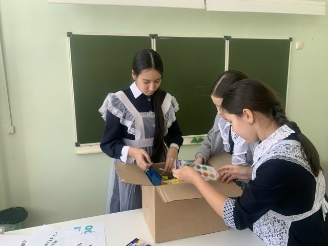 Акция по сбору гуманитарной помощи называется «Коробка добра». Школа села Татар-Улканово Туймазинского района приняла участие в акции по сбору гуманитарной помощи «Коробка добра». Посылки отправили в подшефные образовательные учреждения города Красный Луч Луганской Народной Республики. В коробках – канцелярские товары, книги, материалы для творчества. Фото: соцсети школы Татар-Улканово