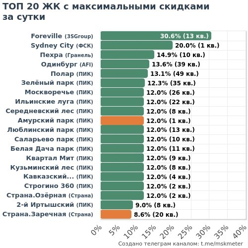 🟩 Честные скидки: 47 ЖК (804 кв.) 🟧 Маркетинг скидки: 33 ЖК (480 кв.) 💎 МАКСИМАЛЬНАЯ ЭКОНОМИЯ 🏆 Донстрой • Остров ├🔻7.9M → 99.2M • 3-к 115м² ├🔻7.9M → 98.1M • 3-к 115м² └🔻7.8M → 97.3M • 4-к 134м² 🥈 ФСК • Sydney City └🔻7.8M → 39.0M • 3-к 85м² 🥉 Страна • REPUBLIC ├🔻6.0M → 88.9M • 3-к 97м² ├🔻5.7M → 84.8M • 3-к 110м² └🔻5.4M → 80.6M • 3-к 78м² 4️⃣ 3SGroup • Foreville ├🔻5.3M → 17.2M • 2-к 64м² └🔻5.2M → 18.4M • 3-к 66м² 🔑 САМЫЕ ДОСТУПНЫЕ 🏆 ПИК • Ильинские луга ├🔻732к → 6.1M • Студия 22м² ├🔻753к → 6.3M • Студия 22м²❗️ └🔻758к → 6.3M • Студия 23м²❗️ 🥈 Самолёт • Богдановский Лес └🔻124к → 6.2M • 1-к 35м² 🥉 ПИК • Белая Дача парк ├🔻774к → 6.4M • Студия 22м² └🔻785к → 6.5M • Студия 22м²❗️ 4️⃣ Гранель • Пехра ├🔻962к → 6.8M • 1-к 36м²❗️ ├🔻962к → 6.8M • 1-к 36м² └🔻974к → 6.8M • 1-к 37м²❗️ ❗️— лоту меньше месяца 👇 Полная статистика: 📲 В Telegram | 🌐 На MskMeter.ru
