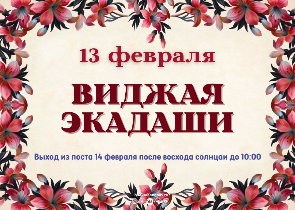 ] ✨✨✨ 13 февраля - ВИДЖАЯ ЭКАДАШИ ✨✨✨ "Экадаши-деви приходит, чтобы помочь дживам навечно воссоединиться с Господом. Она всегда думает о том, как помочь обусловленным душам и садхакам развиваться в бхакти. По ее милости дживы всегда будут стремиться прогрессировать в бхакти и никогда не оставят этот путь ради наслаждений в материальном мире. Они будут находиться под ее защитой. К сожалению, не все принимают прибежище у Экадаши-деви. Даже те, кто утверждает, что приняли у нее прибежище, лишь притворяются. Многие преданные думают, что, соблюдая Экадаши, ослабеют, поскольку не будут принимать пищу и воду. Как тогда они будут повторять Святое Имя, проводить ягьи и предлагать пушпанджали? Разве в таком состоянии они смогут погрузиться в чтение «Гиты» или «Бхагаватам», слушание Веданты и Упанишад? Преданных беспокоят такие мысли. Но на того, кто отказывается от воды, еды, сна и удобств ради удовольствия Экадаши-деви, она прольет множество благословений. Она даст ему чистый разум, знание