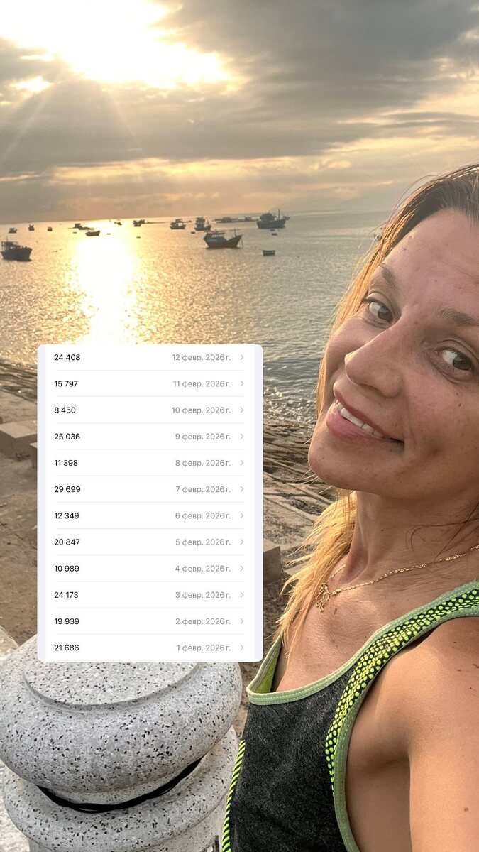 ? За первые 12 дней февраля мой счётчик активности показал 220+ км — и это не про «силу воли», а про то, как я выбираю жить. Почему я бегаю? Бег для меня — маленькая медитация: время побыть с собой, привести ум в порядок, вернуться в «здесь и сейчас». Бег реально помогает снизить стресс и поднять настроение (в том числе за счёт эндорфинов и других «химических» процессов в организме), и я это чувствую буквально телом после каждой пробежки. Раньше я была супер-карьеристкой: во время бега слушала книги, делала пометки, всё время «в пользу». А сейчас с гораздо большим удовольствием я не слушаю ничего — порой даже музыку в наушниках. Просто дыхание, шаги, город, мысли, которые спокойно раскладываются по полочкам. И вот эти потрясные 60 минут — лучшие в моём дне. Я правда свечусь изнутри (а не только улыбка), и отдельно кайфую от ощущений в теле — ясность, лёгкость, энергия. Что мне даёт спорт? Энергию и настроение. Напоминание: жизнь — она здесь, а не в онлайне. Что самое сложное?