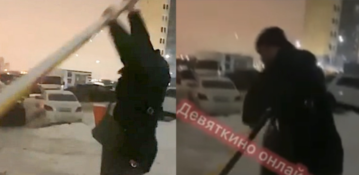 На фотографиях с места инцидента запечатлён мужчина в тёмной одежде: он высоко держит над головой обломки разрушенного шлагбаума, словно торжественно демонстрируя свою победу над техническим препятствием.