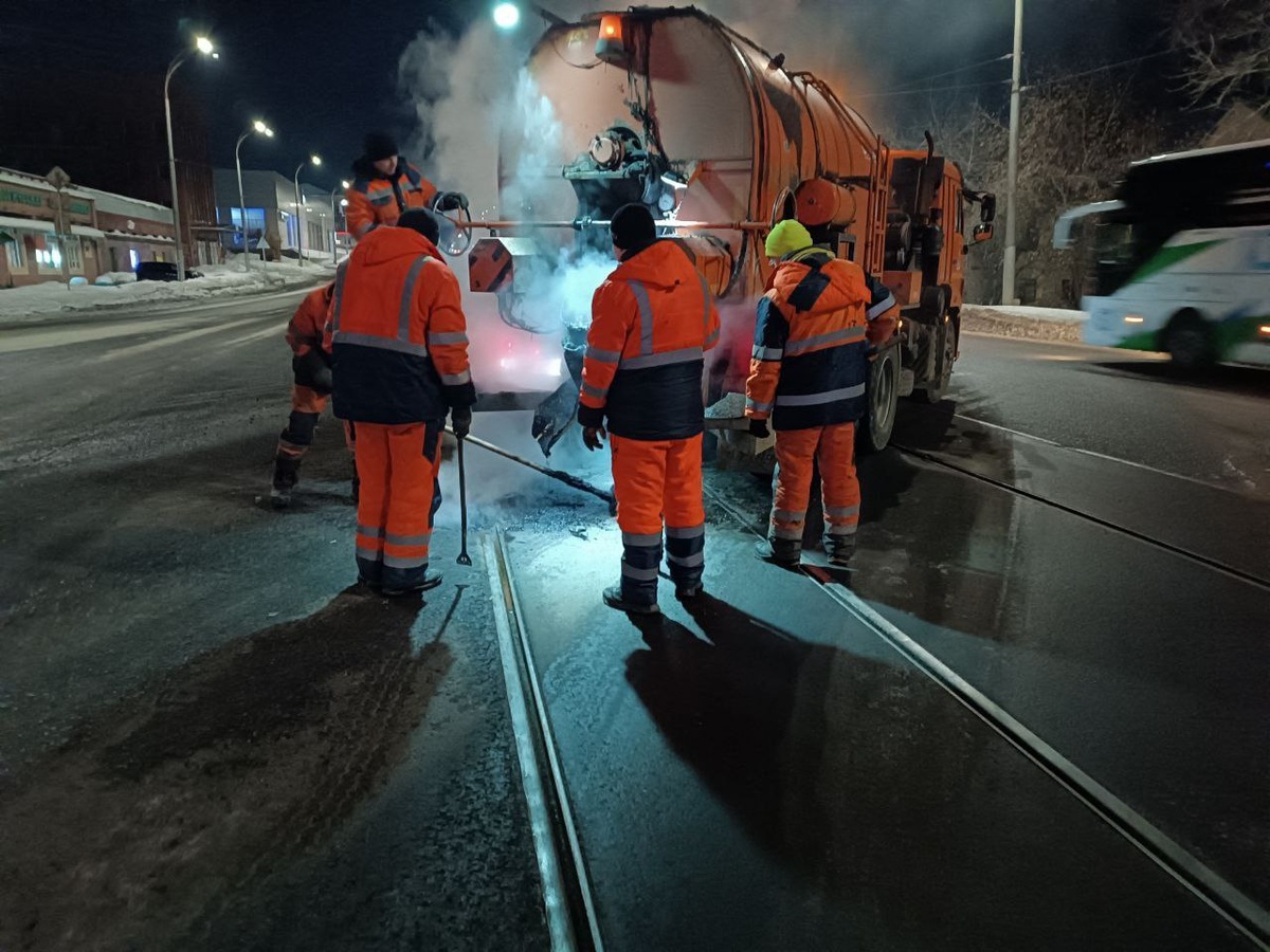 В Кемерове ночью провели ямочный ремонт на перекрестке пр.Кузнецкий с ул.Автозаводская