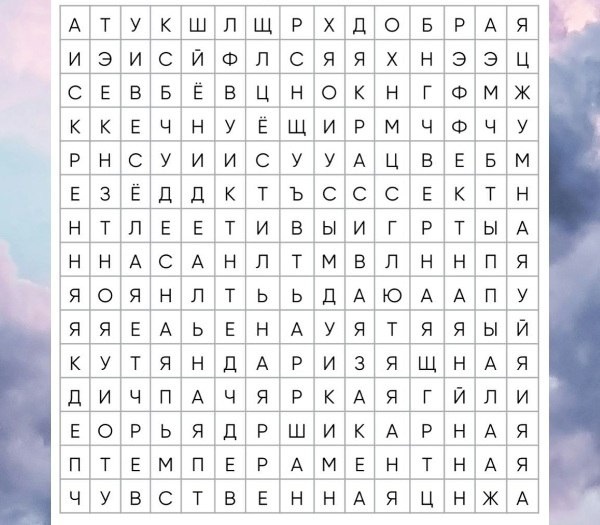 ! 😁 Решила сегодня немного вас взбодрить. Перед вами картинка, на которой спрятались несколько комплиментов. Найдите три ПРИЛАГАТЕЛЬНЫХ - они про вас! ‼️Ни в коем случае не подсматривайте чужие ответы, пока не найдёте СВОИ СЛОВА ‼️ Вроде бы и игра, но... Из всего "пространства вариантов" наш мозг выбирает именно то, что выбирает. И его выбор совсем не случаен. И на этой картинке каждая из вас увидит свои слова, свой набор слов. Все эти слова ПРО ВАС! Не на секунду не забывайте об этом! Какие слова вы нашли? Обязательно напишите! С заботой о вас, Людмила Капранова.