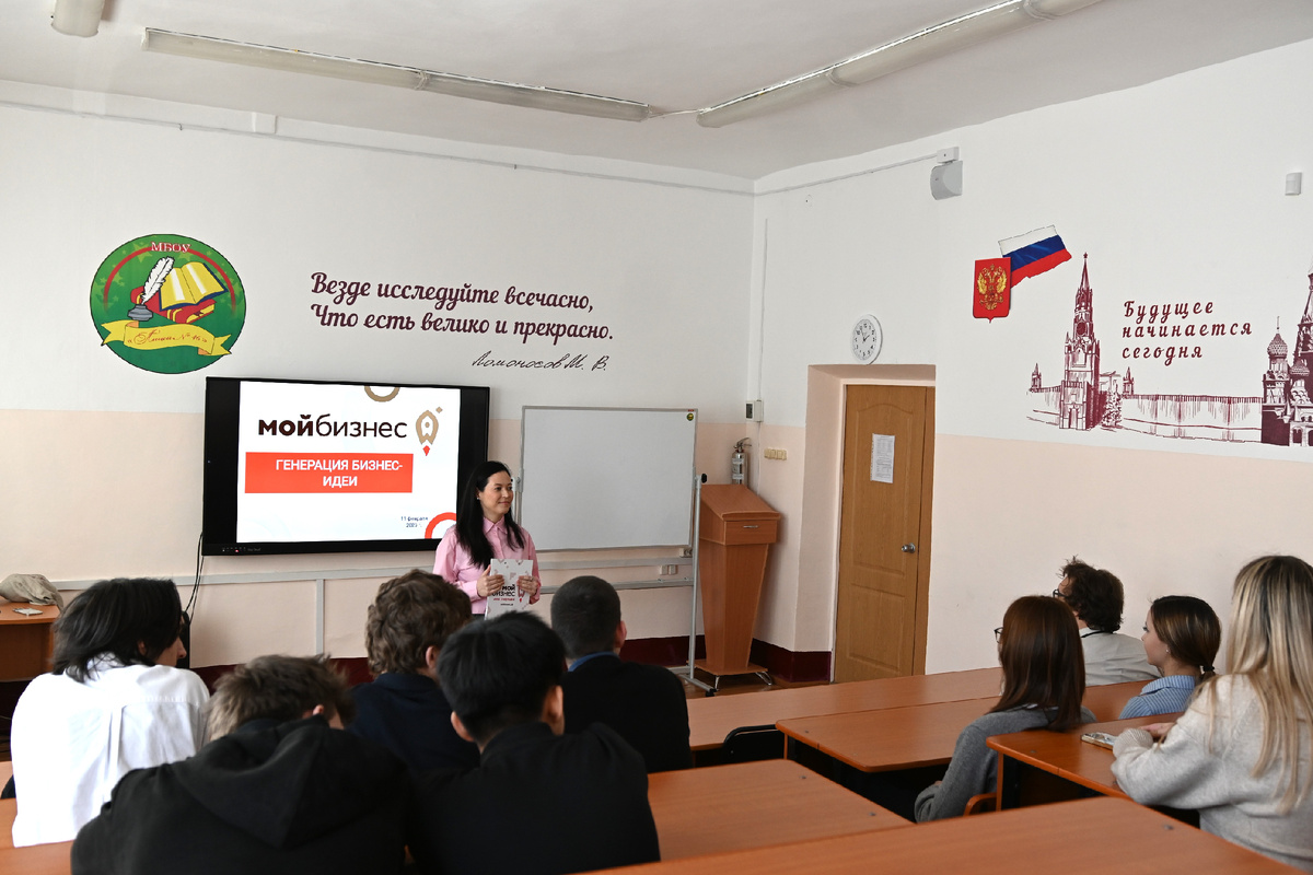 11 февраля 2026 года ученики предпринимательского класса лицея №46 приняли участие в уроке от Центра «Мой бизнес». С началом года в образовательных организациях края возобновились открытие уроки по основам предпринимательской деятельности. Десятиклассники профильного предпринимательского класса лицея №46 узнали об основах ведения своего дела и способах генерации бизнес-идей. Встреча завершилась интересным интерактивом, на котором ребята представили собственные проекты. «Открытие уроки — это увлекательный способ взаимодействия с будущими предпринимателями. Во время таких встреч не только школьники и студенты узнают что-то новое, но и наши специалисты учатся у ребят креативному мышлению», — рассказала заместитель директора АНО «Камчатский центр поддержки предпринимательства» Ксения Тюрина. Отделом развития инноваций и молодежного предпринимательства осуществляется комплекс мероприятий, включающий в себя регулярные открытые уроки, деловые игры, тренинги, экскурсии в Центр «Мой бизнес», а