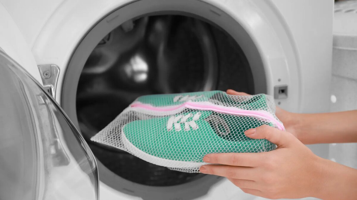 Легкая обувь, ткань, клей — всё кажется хрупким. Пока я не решила попробовать правильный способ стирки в машине, о котором давно слышала, но боялась экспериментировать. Первое, что я делаю: внимательно смотрю на ярлык и подошву.