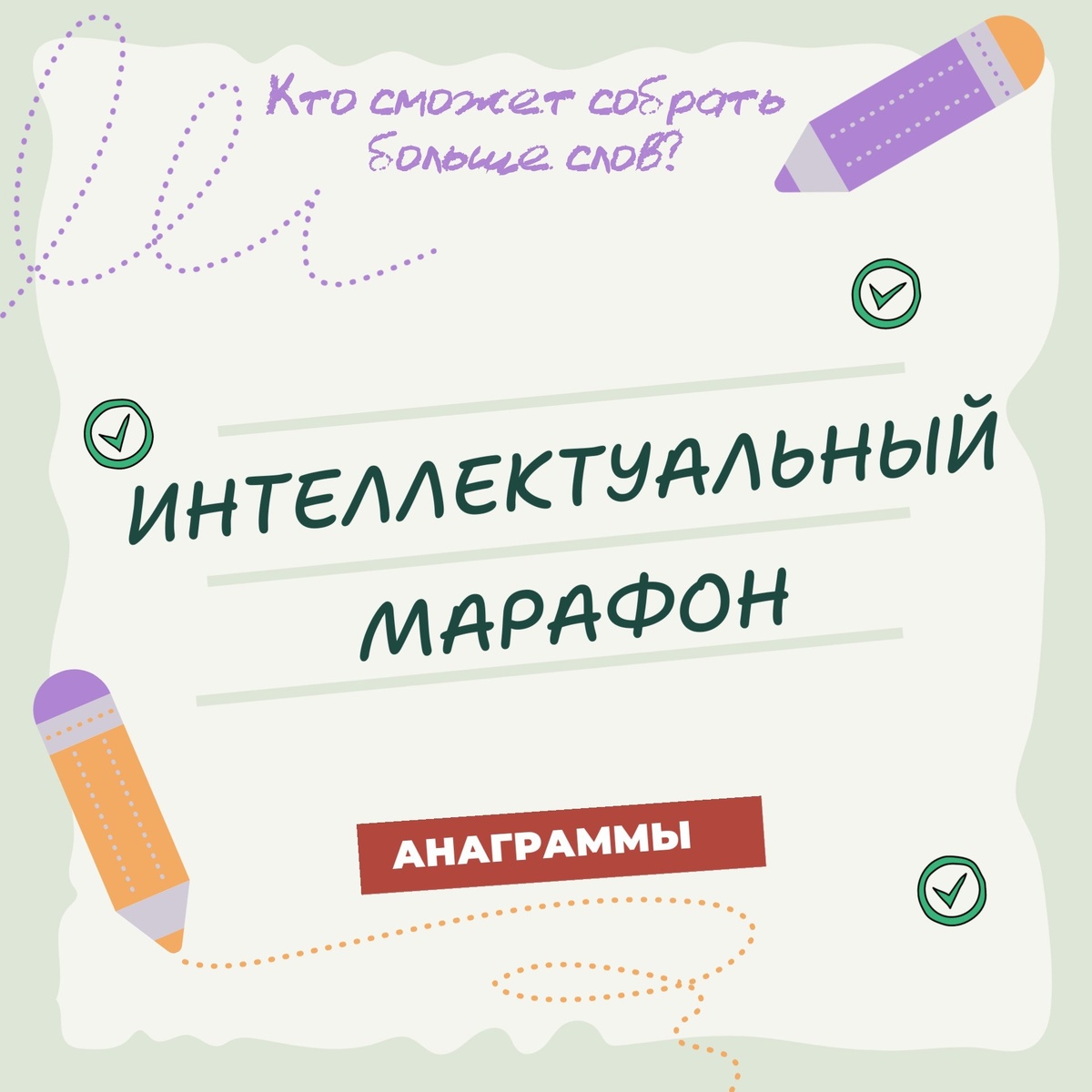 "ИНТЕЛЛЕКТУАЛЬНЫЙ МАРАФОН" - именно из этой фразы Вам нужно составить как можно больше слов.