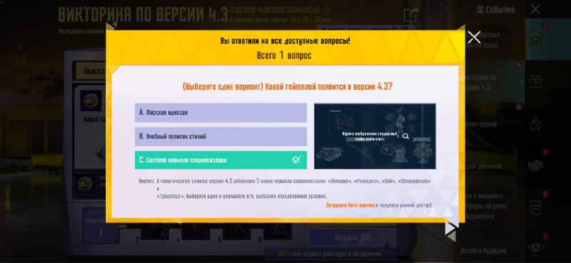 12.02.2026-10.03.2026 Разгадай секреты новой версии и получи отличные награды! 1. Какой геймплей появится в версии 4.3?