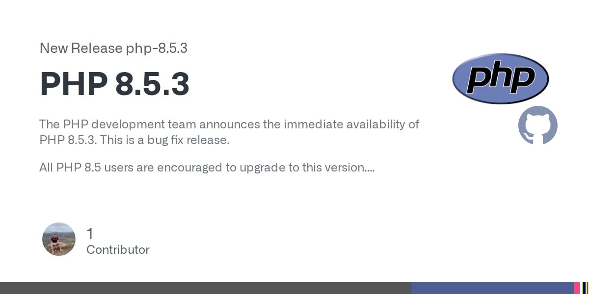 Команда разработчиков PHP объявила о выходе PHP 8.5.3. Это релиз, направленный на исправление ошибок. 🚀 Всем пользователям PHP 8.5 настоятельно рекомендуется обновиться до данной версии. ➡️ Полный список изменений в PHP 8.5.3