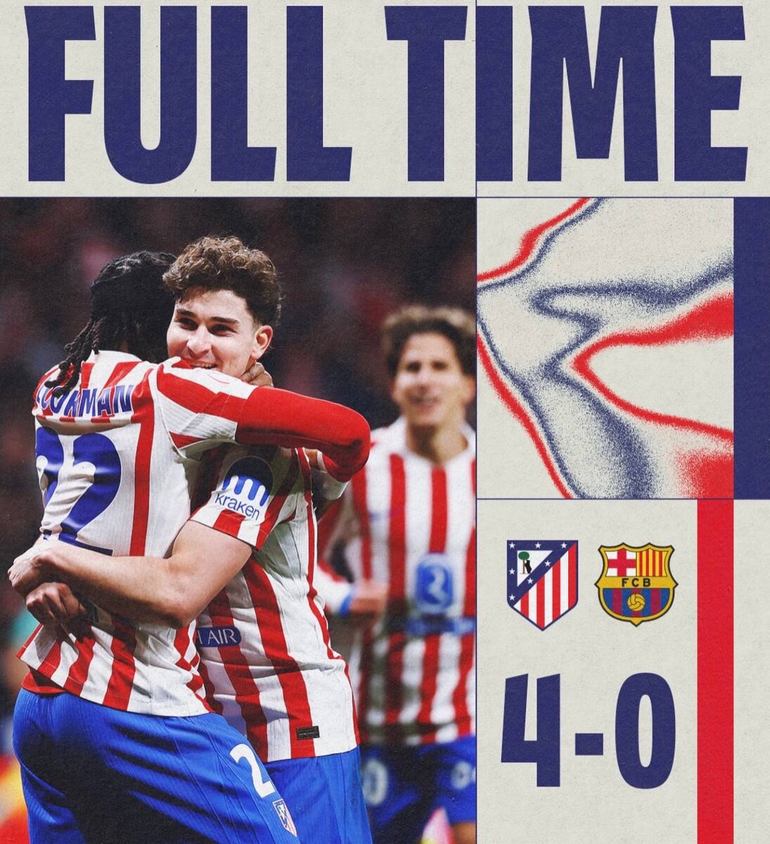 ? Атлетико разнес Барсу в первом полуфинальном матче кубка😱 Причем сделал это супер уверенно, такой игры от Атлетико не ожидал. Альварес и Лукман оба по 1+1, и как хорош Адемола, пока отлично вписывается В чем такой провал вчерашнего матча от Барсы? ➡️ Подписаться на ФутХайп