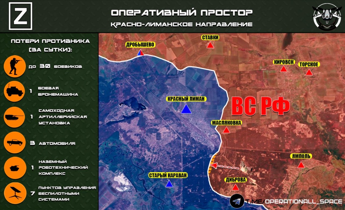 🇷🇺На Красно-Лиманском направлении ВС РФ продолжают наступление в направлении города Красный Лиман