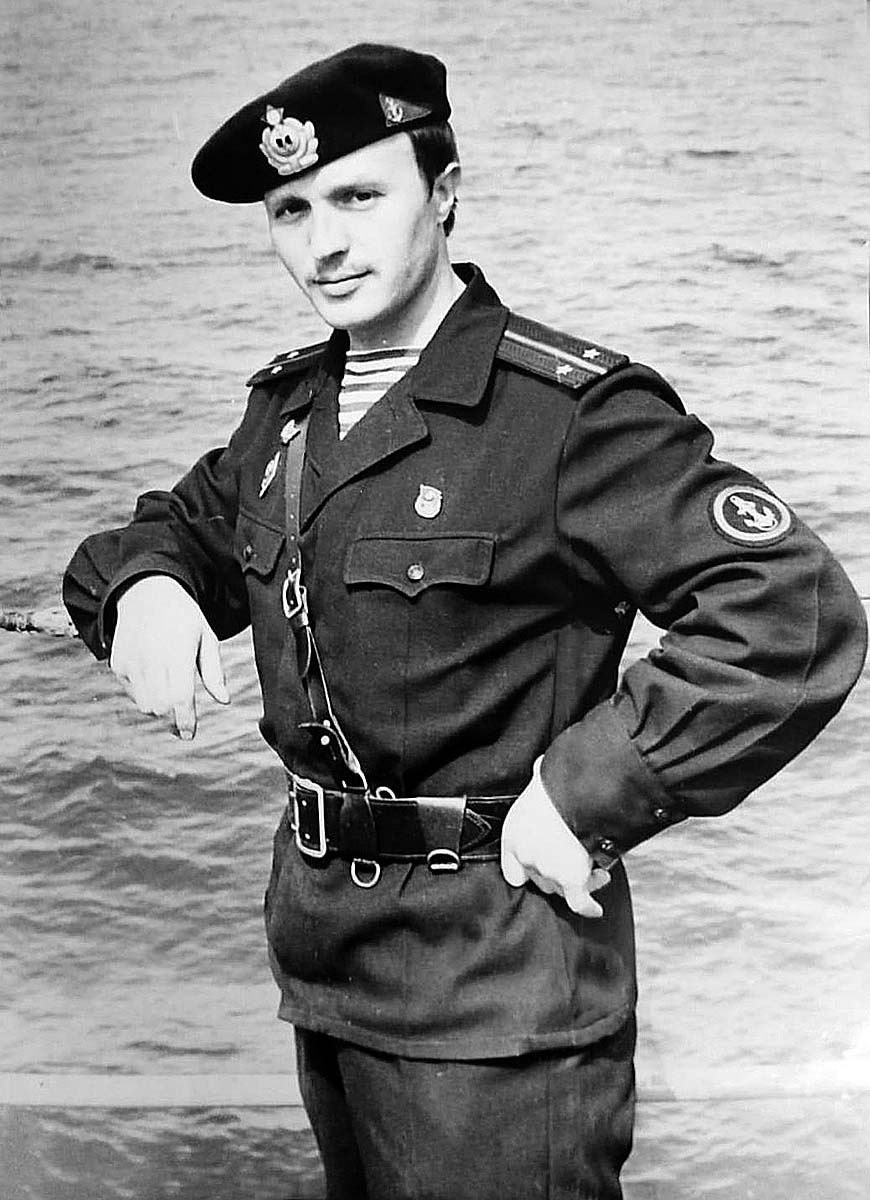 Родился я в большой семье — шестеро братьев, три сестры. В сибирской глубинке мечтал стать военным моряком. Конечно, я тогда мало что знал об офицерской службе, но в село вернулся наш сосед, отслужив четыре года на артиллерийских крейсерах. От него много интересного узнал о службе на флоте и понял, что я должен стать военным моряком. Сосед подарил мне тельняшку, и я её по великим праздникам всегда надевал. После окончания школы и автодорожного техникума был призван в армию. В военкомате мне обещали, что попаду на службу в Военно-Морской Флот, а на деле отправили в сухопутные части, ордена Ленина Забайкальский военный округ. Как раз после событий на Даманском острове на реке Уссури нас отправили на обустройство укрепрайонов на советско-китайской границе. За службу тогда я получил знаки солдатской доблести, но мечта стать офицером ВМФ меня не покидала.