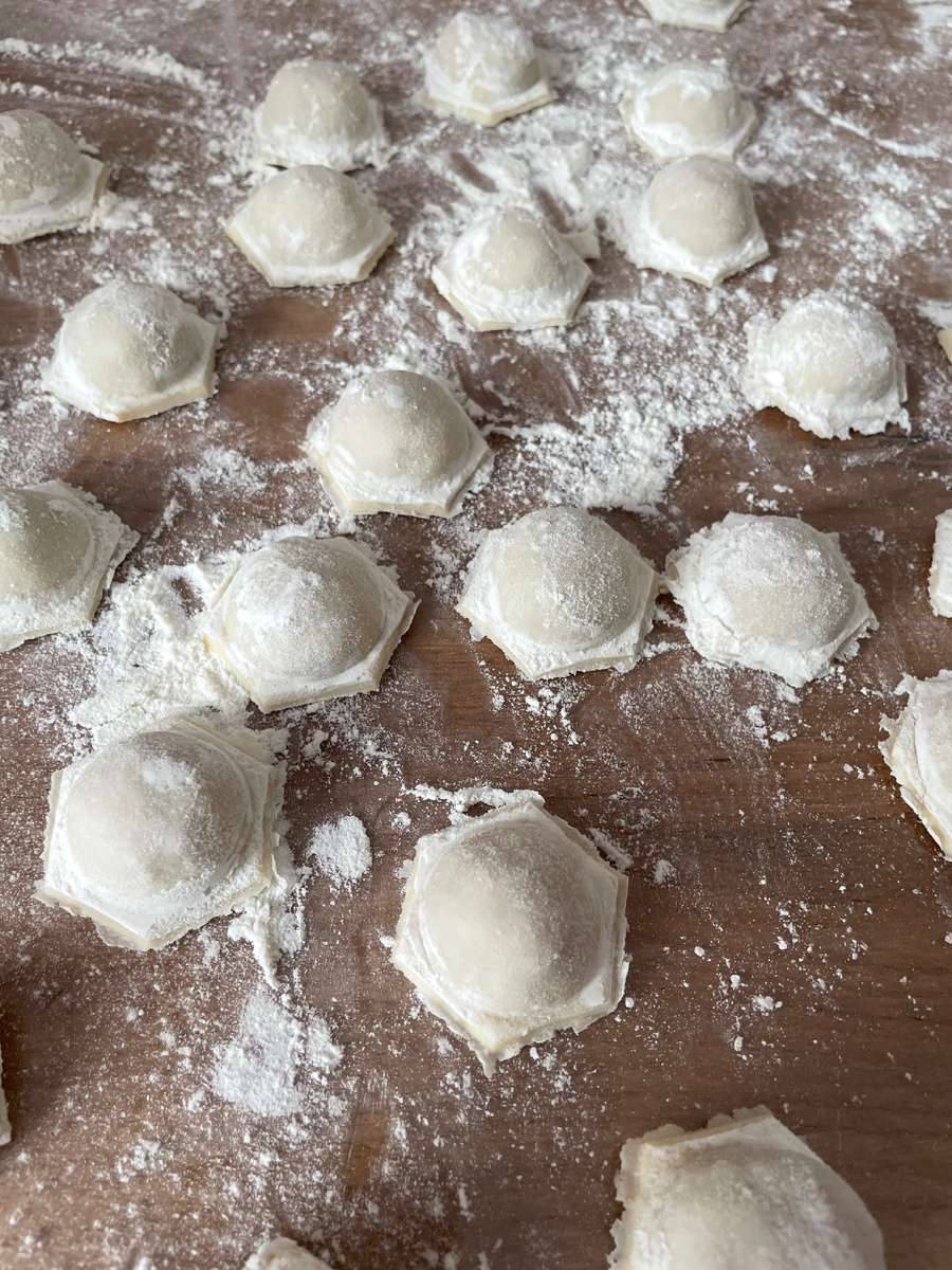 - выкладывайте готовые пельмени на доску, присыпанную мукой.