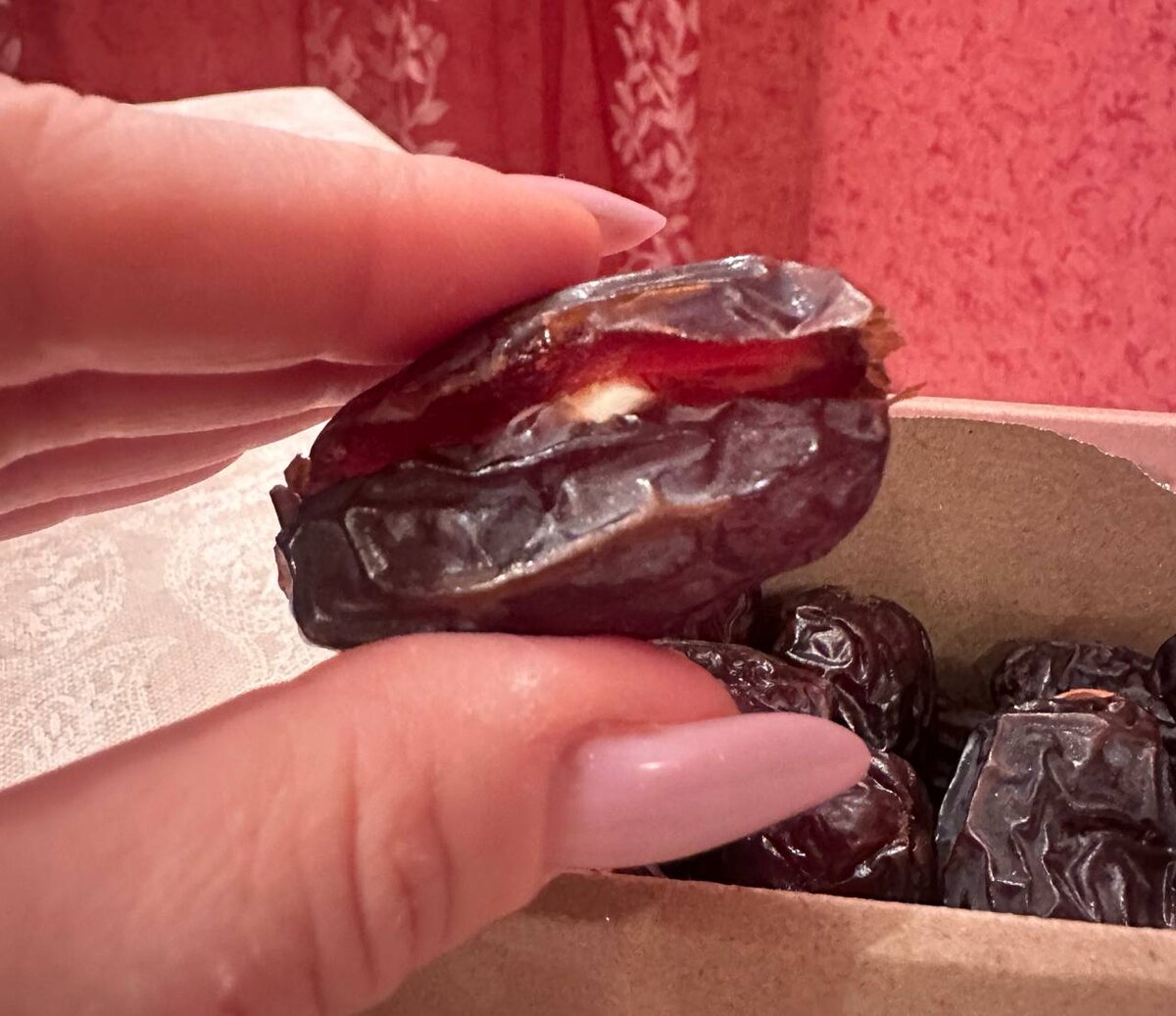 Вкус: сладкий финик + солёное сливочное масло = как карамельный десерт (многим напоминает ириску). Сытость: финики — быстрые углеводы, масло — жиры. Вместе дают долгую сытость и меньше тянет на сладкое. Энергия: хороший вариант перед тренировкой или как ПП-десерт (если без фанатизма). ⚠️ Но есть нюансы Калорийность высокая: 1 финик ≈ 20–25 ккал кусочек масла ≈ 30–40 ккал → 3–4 штуки = полноценный перекус. Если есть инсулинорезистентность или диабет — лучше осторожно. Как делают по тренду Финик разрезают, убирают косточку Кладут внутрь кусочек солёного сливочного масла Иногда добавляют щепотку соли или орех