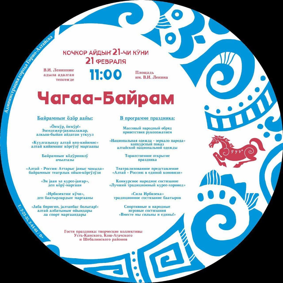 ! 🌕 Чагаа - Байрам или «Праздник белого месяца» символизирует астрономическое начало Нового года по алтайскому и лунному календарю. Городской Дом культуры подготовил для горожан и гостей столицы региона праздничную программу, которая начнется в 11:00 на на площади им. В.И. Ленина. В рамках празднования нас ждут: ✨ театрализованное представление «Алтай – Россия: в единой коновязи», ✨ народные и спортивные состязания, ✨ конкурс на лучшую интерактивную площадку, ✨ праздничный парад «Национальная одежда — зеркало народа» — конкурсный показ алтайской национальной одежды авторов, ✨ народные обряды, угощения, выставка народных ремесел и многое другое. #новости Фото: Администрация города Горно-Алтайска 👍Подписывайся на Вести Эл Алтай МАХ | Телеграм