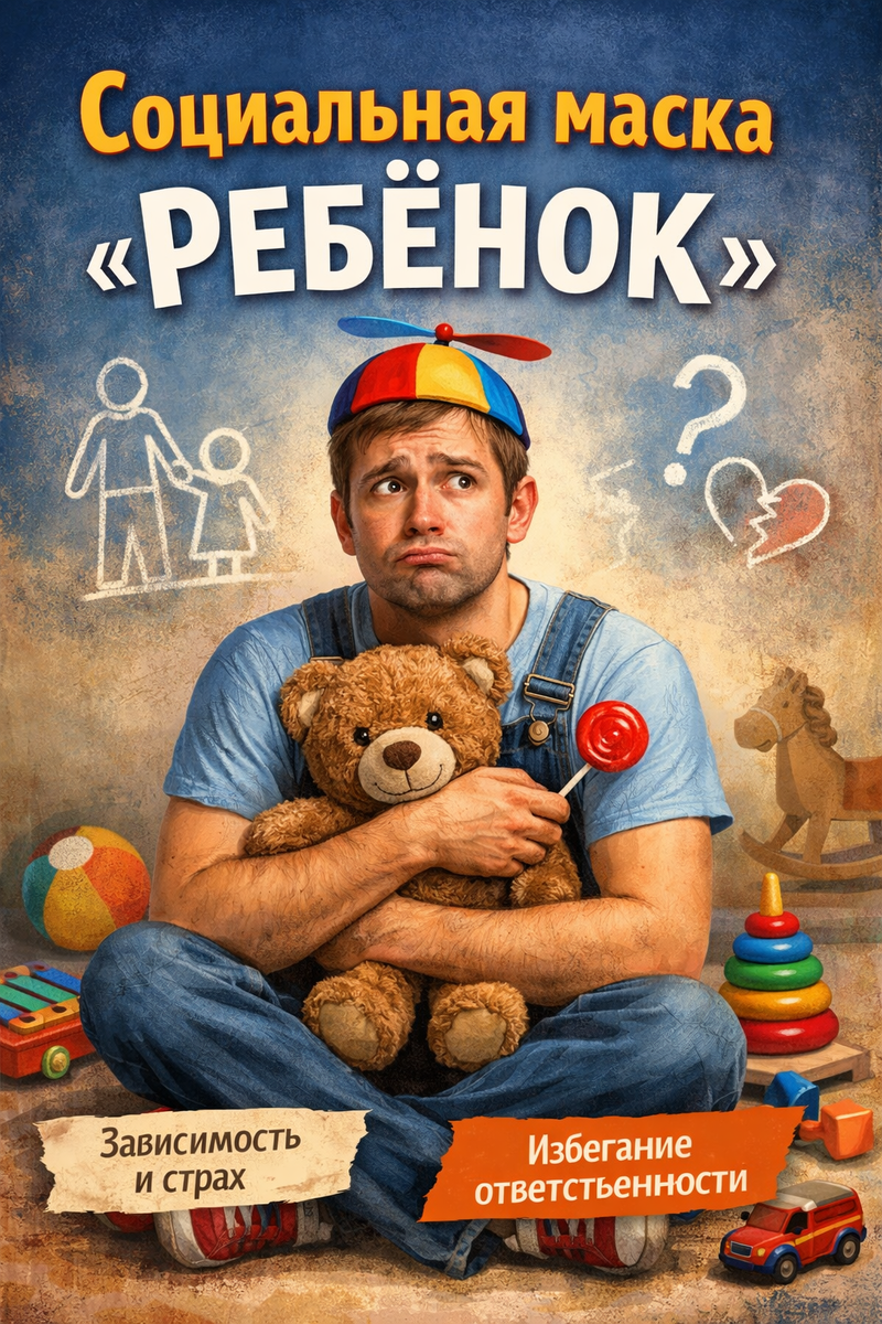 Но иногда маска становится не инструментом, а основой личности. И тогда взрослый человек живёт не из зрелой позиции, а из позиции психологического ребёнка.