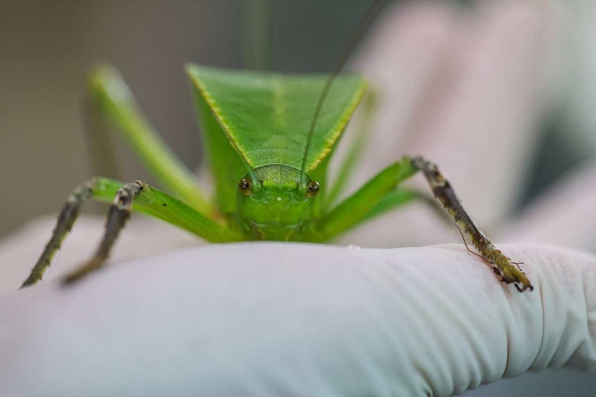 В один из террариумов «джунглей» Приморского океанариума вернулись самые крупные в мире новогвинейские кузнечики Siliquofera grandis. Пока в новом доме осваиваются два молодых самца. Ещё недавно они росли в зоологическом «детском саду» — научной лаборатории, где появляются на свет и подрастают насекомые, земноводные и пресмыкающиеся научно-образовательного комплекса. Через 2–3 недели компанию им составят несколько юных самок.