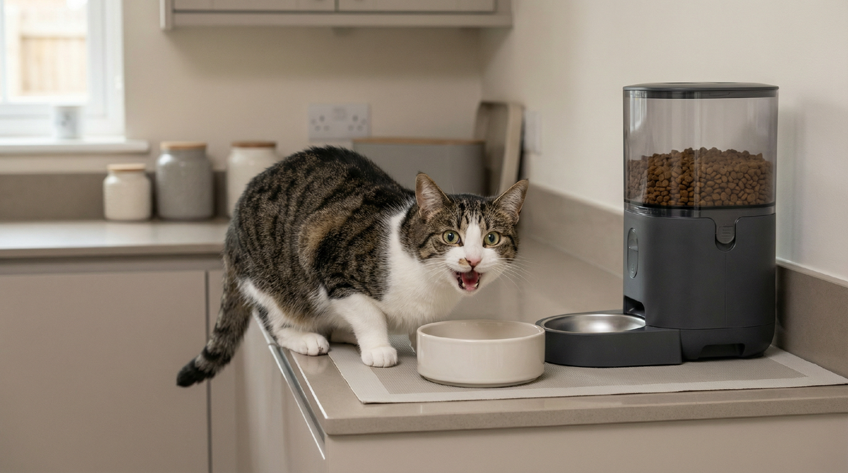 Выставьте кормушку на пять-шесть кормлений в сутки, маленькими порциями. Первые три дня кошка будет орать ещё сильнее, проверяя, работает ли старая схема. Не сдавайтесь. Игнорируйте крик полностью. Не смотрите на кошку, не разговаривайте, не трогайте миску. Через три-четыре дня кошка сдастся и примет новые правила. Был кот, который будил хозяйку в пять утра воем у миски. Каждый день. Хозяйка купила автокормушку, выставила первое кормление на семь утра. Кот орал три дня подряд. На четвёртый замолчал. Через неделю спал до семи и спокойно ждал, когда кормушка откроется.