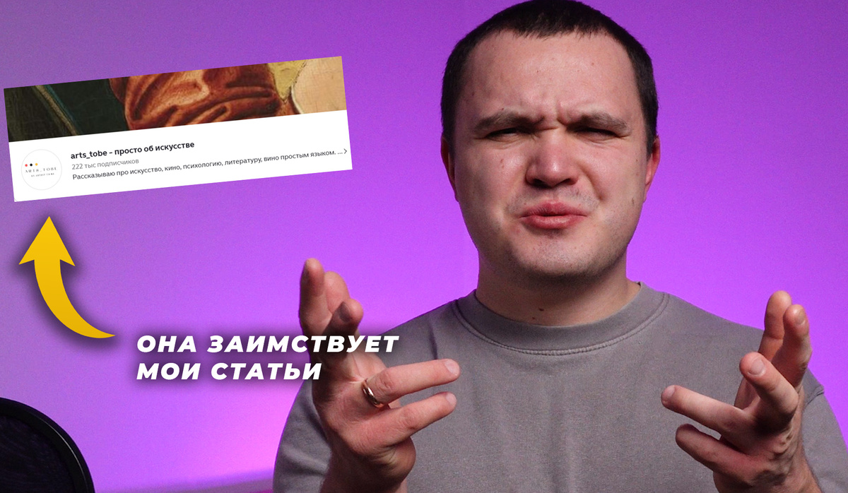 Я уже давно замечаю, как популярный дзен-канал об искусстве "arts_tobe" берет мои статьи для создания собственных. Примерно год назад я уже писал автору этого канала в комментариях по этому вопросу, но меня заблокировали. Я не вижу проблемы в заимствовании тем, но в случае arts_tobe часто речь идет о рерайте.