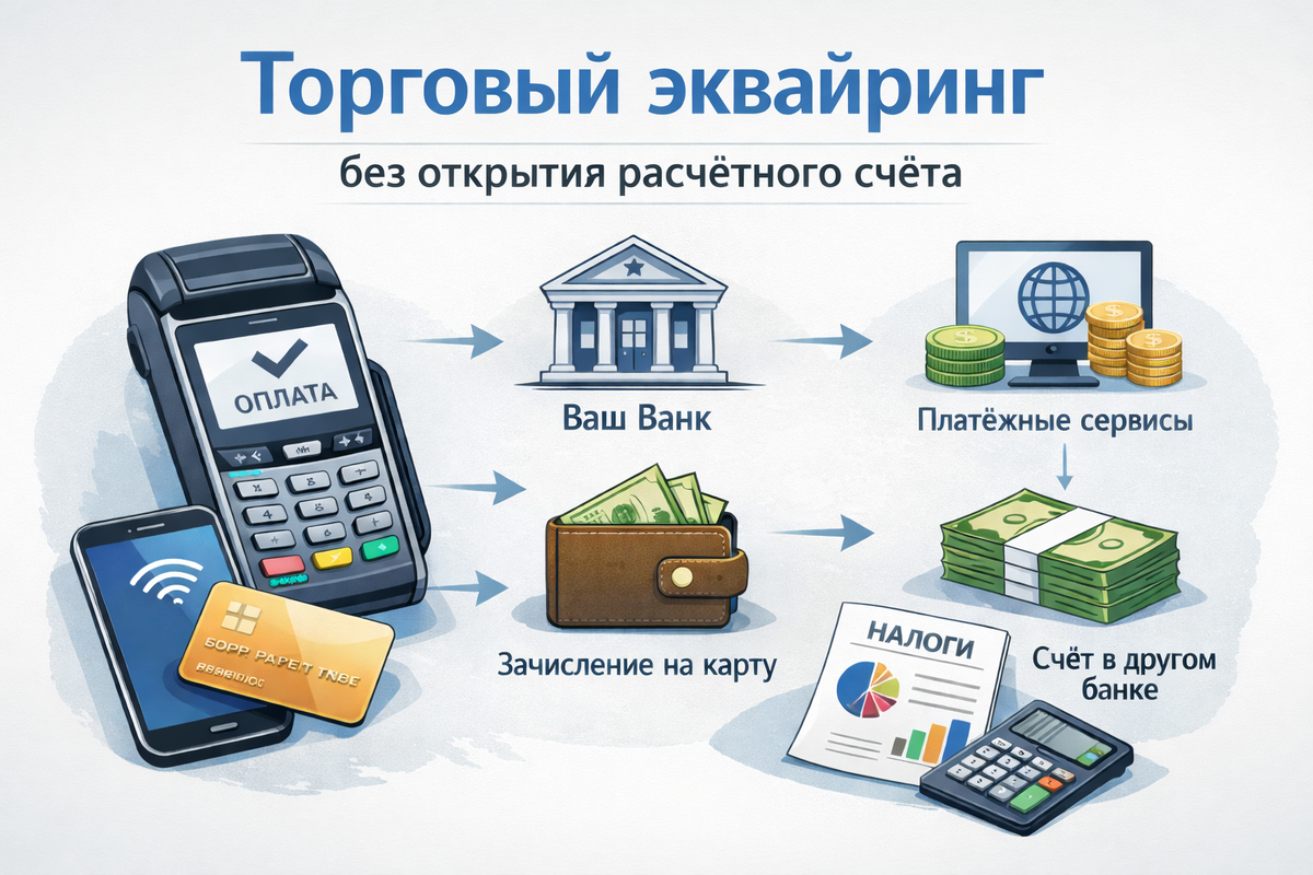 Торговый эквайринг — это услуга банка или платёжной организации, позволяющая принимать оплату банковскими картами через POS-терминал в торговой точке. Классическая схема предполагает обязательное открытие расчётного счёта в банке-эквайере. Однако на практике возможен и другой формат — подключение торгового эквайринга без открытия расчётного счёта.