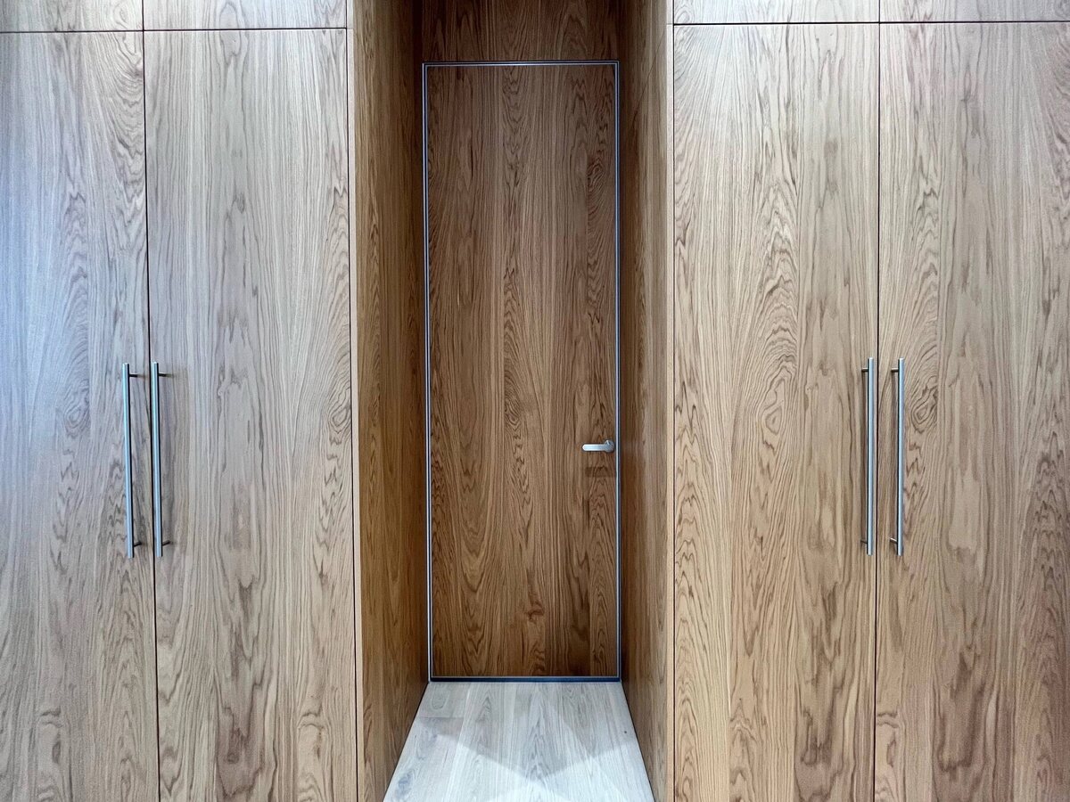 Единая конструкция шкафов в приходе с кухонным гарнитуром меняет пространство. ✅ Шкафы на входе МДФ в шпоне дуба. ✅ Межкомнатная дверь скрытого монтажа или»дверь-невидимка». ✅ Шкаф в детской МДФ в шпоне дуба с подбором рисунка шпона по проекту Заказчика. Фурнитура Blum. Напишите нам для консультации и заказа. #дом_мебель