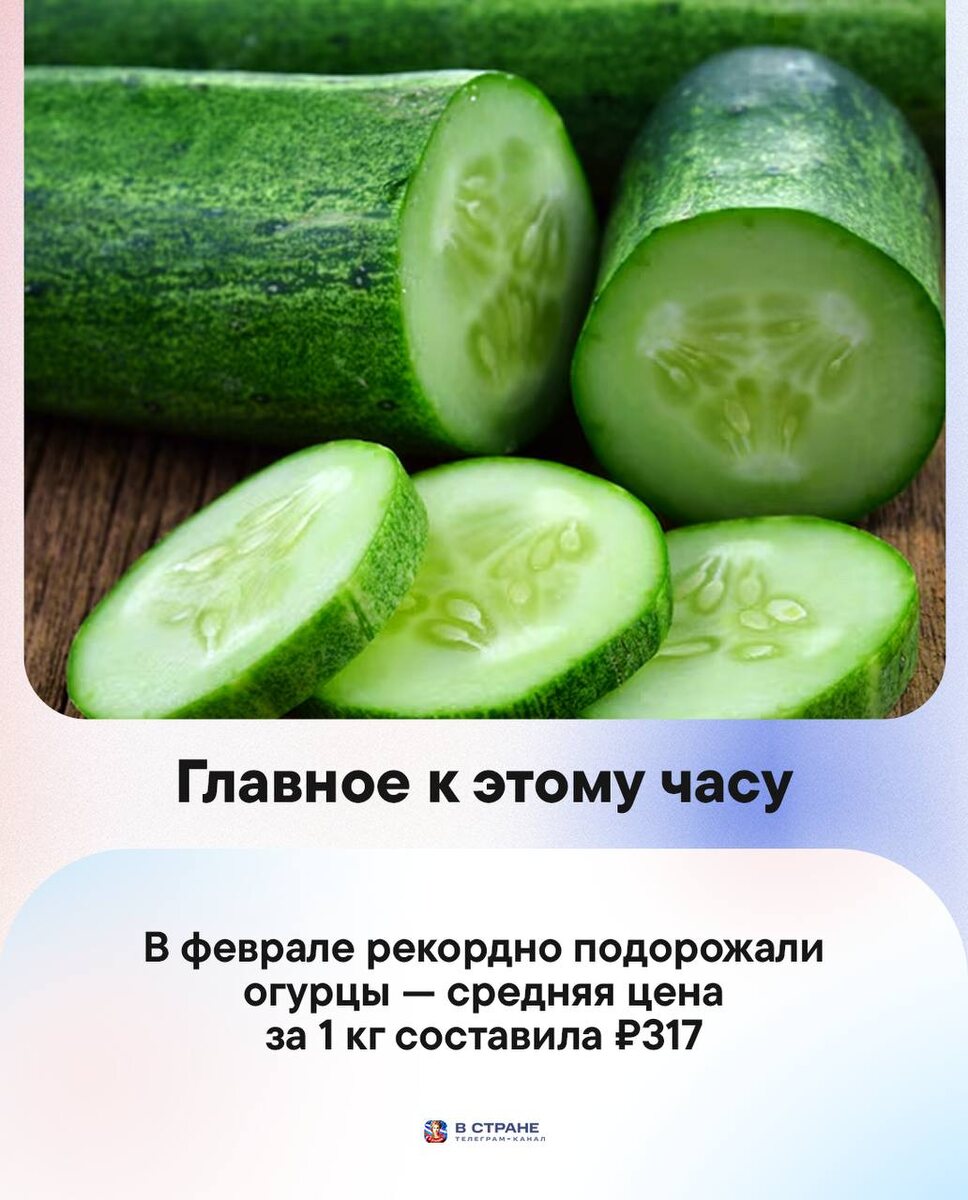 : 🔹В феврале рекордно подорожали огурцы — средняя цена за 1 кг составила 317 рублей. 🔹Россияне с 1 апреля смогут заселиться в отель по водительскому удостоверению, биометрии или через портал «Госуслуги». 🔹Иностранные бренды со временем вернутся в РФ, когда ослабнет политизированное давление Запада, заявил Песков. 🔹Аферисты в феврале публикуют объявления о «срочной распродаже автотоваров со склада» по низким ценам, предупредили эксперты. 🔹Силы ПВО за ночь сбили 58 украинских беспилотников над регионами России, сообщает МО РФ. ✅ «В Стране» в MAX