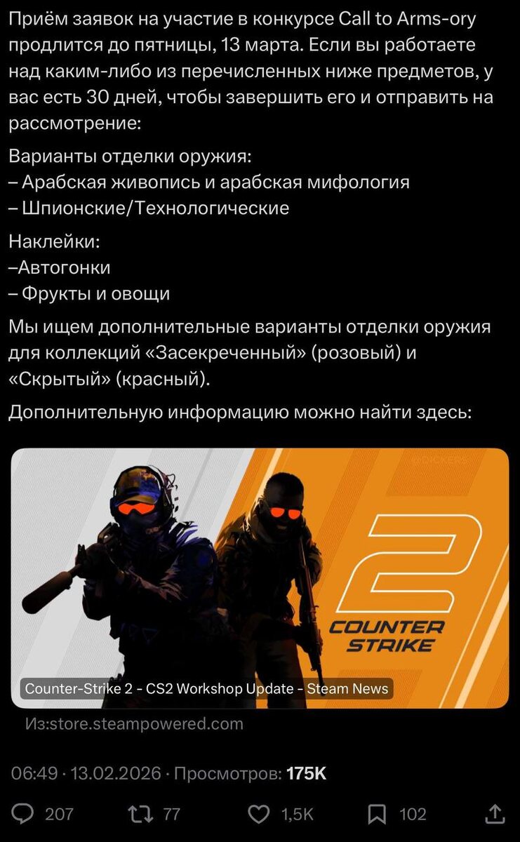 Внезапно Valve выпустили анонс в своем аккаунте! Они сообщили, что прием заявок на участие в конкурсе по созданию скинов на тему: