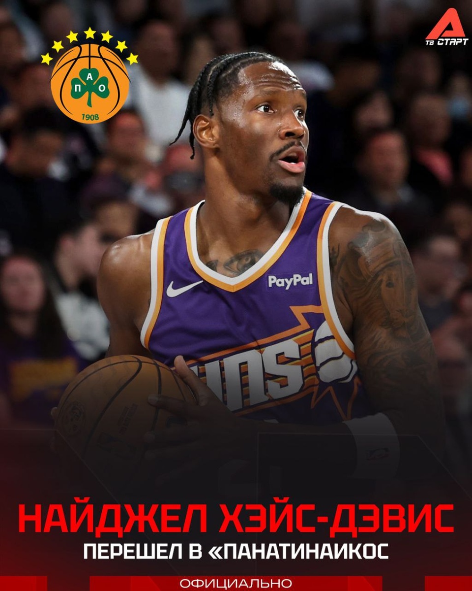 »! Встречаем в Афинах американского форварда Найджела Хейс-Дэвиса. Весной он выиграл Евролигу с «Фенером», а затем совершил камбэк в НБА. Достаточной игровой практики в «Финиксе» Найджел не получал. Рассматривал ряд предложений из Европы и в итоге остановился на «Пао». Увидим Хейс-Дэвиса совсем скоро в чемпионате и Кубке Греции на платформе TVSTART.RU 🖥 Подписывайся на ТВ СТАРТ в MAX📲
