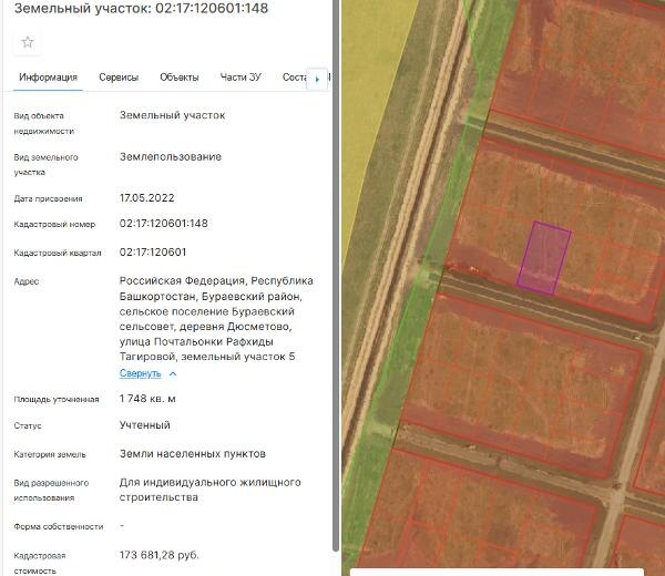 Название: Земельный участок с кадастровым номером: 02:17:120601:148, категория земель: Земли населенных пунктов, площадью 1748 кв.м