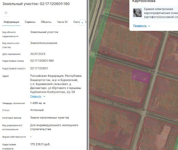 Название: Земельный участок с кадастровым номером: 02:17:120601:180, категория земель: Земли населенных пунктов, площадью 1499 кв.м